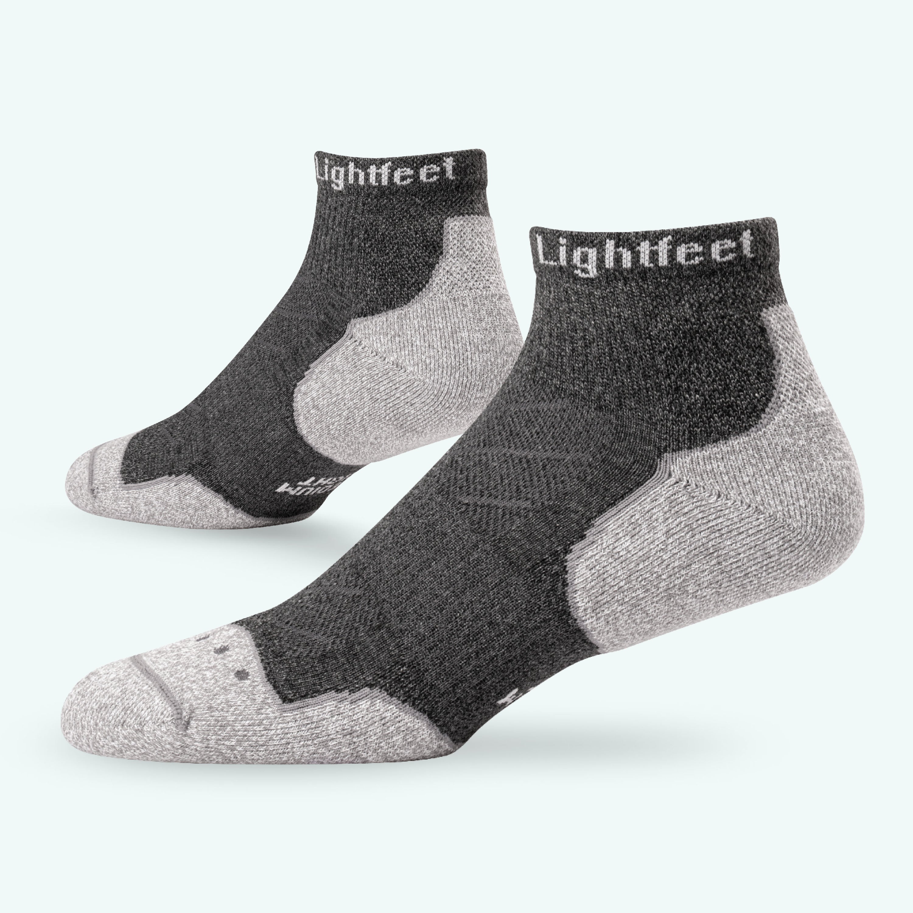 Lightfeet Trail Performance Socks feature an elastic arch that contours to the shape of the foot to help keep the sock in place.