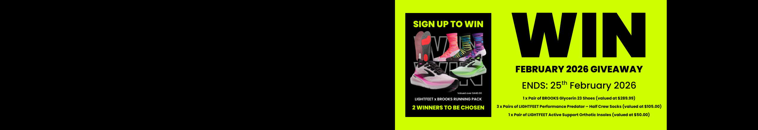 Two lucky winners will step into serious comfort with a Lightfeet x Brooks prize pack valued at over $440.00 🙌