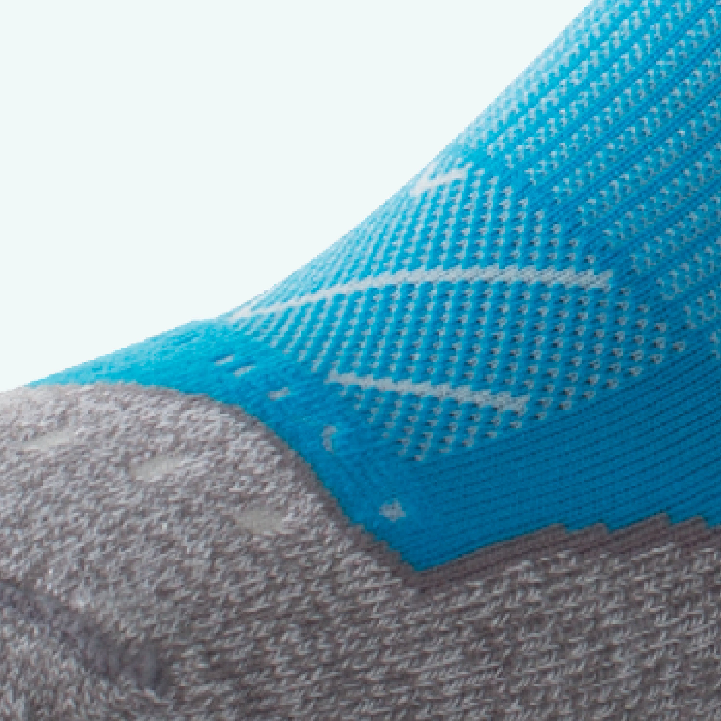 Close up view of mesh on Lightfeet Evolution Sky Blue Mini Crew Performance Running Sock